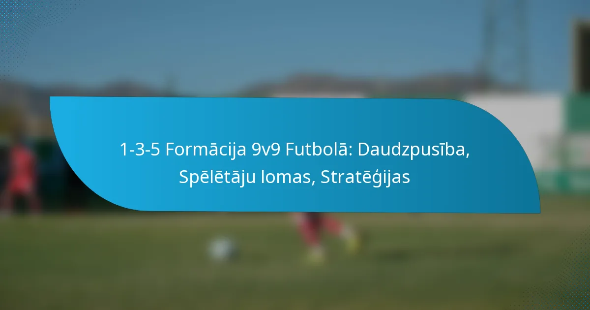 1-3-5 formācija 9v9 futbolā ir taktiska pieeja, kas prioritizē spēcīgu vidējo līniju, vienlaikus nodrošinot aizsardzības drošību un vairākas uzbrukuma iespējas. Izmantojot vienu vārtsargu, trīs aizsargus un piecus pussargus, šī formācija veicina pielāgojamību un plūstošas pārejas, padarot to efektīvu dažādās spēles situācijās.