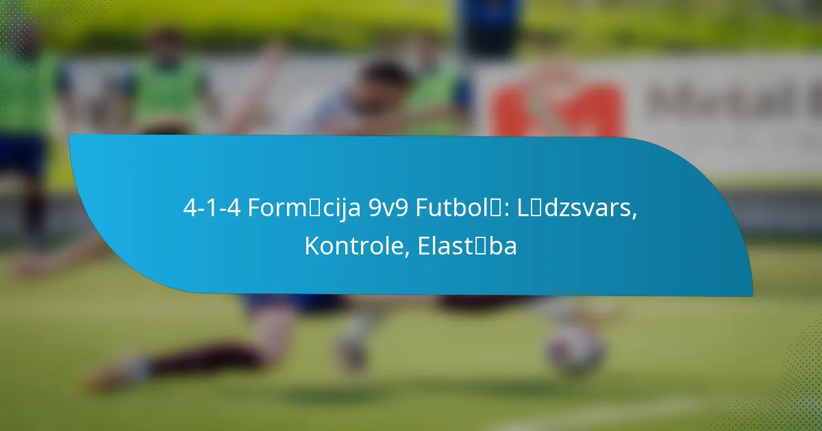 4-1-4 formācija piedāvā līdzsvarotu pieeju 9v9 futbolā, efektīvi izdalot spēlētājus pa laukumu, nodrošinot gan aizsardzības stabilitāti, gan uzbrukuma atbalstu. Šī formācija ļauj komandām saglabāt kontroli viduslaikā, vienlaikus nodrošinot elastību pārejās starp aizsardzību un uzbrukumu.