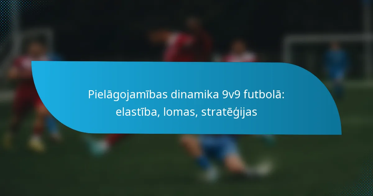 Spēja pielāgoties 9v9 futbolā ir būtiska komandas panākumiem, jo tā ietver spēju mainīt stratēģijas, lomas un taktiku, reaģējot uz spēles dinamiku. Šī elastība ne tikai optimizē sniegumu, bet arī ļauj spēlētājiem mainīt savas lomas, balstoties uz individuālajām stiprajām pusēm un spēles plūsmu. Izmantojot pielāgojamas stratēģijas un veicinot efektīvu komunikāciju, komandas var uzlabot savu reakciju pret pretiniekiem un dažādām spēles situācijām.