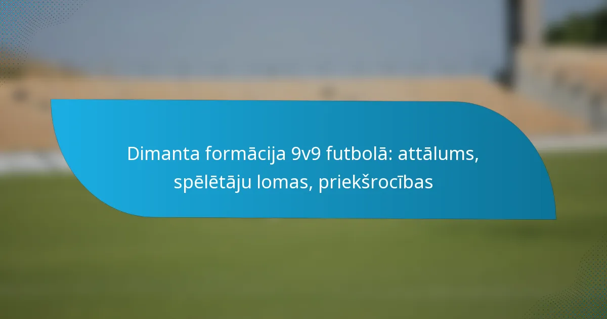 Dimanta formācija 9v9 futbolā sastāv no izteiktām spēlētāju lomām, kas uzlabo gan uzbrukuma, gan aizsardzības stratēģijas. Katram amatam ir specifiskas atbildības, kas veicina komandas kopējo efektivitāti, uzsverot telpu, komunikāciju un taktisko elastību.