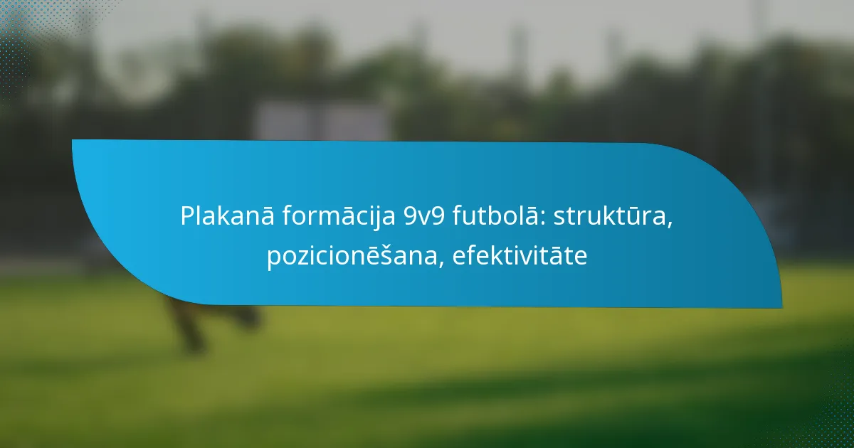 Plakanā formācija 9v9 futbolā ir taktiska izkārtojuma veids, kas spēlētājus sakārto horizontālā līnijā visā laukumā, prioritizējot aizsardzības stabilitāti, vienlaikus nodrošinot platumu uzbrukumā. Šī formācija veicina līdzsvaru starp uzbrukumu un aizsardzību, ļaujot komandām efektīvi pielāgoties dažādām spēles situācijām un uzlabojot kopējo komandas sniegumu.